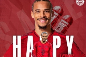 拜仁官方社媒晒出为萨内制作的生日海报,并配文:“生日快乐,勒罗伊!”