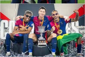 体育资讯01月13日讯 巴萨5比2皇马,球队前场三叉戟莱万1球1助,拉菲尼亚2球1助,亚马尔1球,三人合计贡献4球2助攻。
