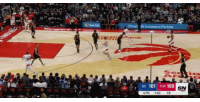 进攻时间剩20秒,库里强行反击三分,没进,然后被打反击,阿巴基扣篮