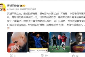 体育资讯01月15日讯 本轮英超,利物浦1-1森林,曼城2-2布伦特福德,切尔西2-2伯恩茅斯。赛后,评述员詹俊发文点评。