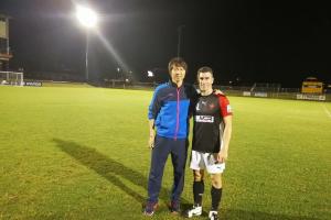 李铁与谢菲联老队友尼克-蒙哥马利相逢,当时蒙哥马利还未退役,效力的正是武汉卓尔热身赛对手卧龙岗狼队。