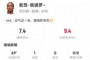 体育资讯12月28日讯 切尔西在本轮英超对阵维拉,若昂·佩德罗本场数据如下: