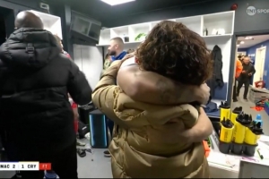 据记者Ben Jacobs社媒透露,这名意外离世的球员名叫Ethan McLeod,球员在去年12月因车祸丧生。他的父母来到更衣室庆祝时,麦克尔斯菲尔德球员和他们一一拥抱,并送上祝福和安慰。