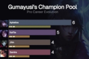 体育资讯1月11日讯 外媒统计Gumayusi英雄池演化历程:2021到2025。