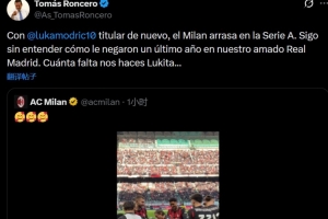 龙赛罗写道:“随着莫德里奇再次以首发身份登场,AC米兰在意甲联赛中展现出了所向披靡的气势。”