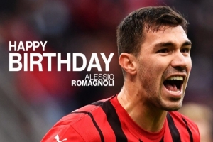 米兰官方社媒晒出罗马尼奥利的生日海报,配文:“祝阿莱西奥生日快乐!”