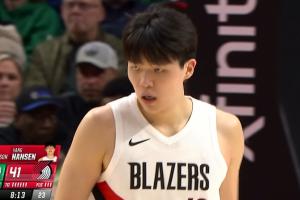 GIF-杨瀚森三分速射得手!随后比出开枪手势哈哈哈!