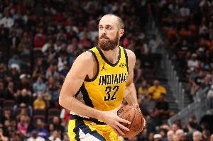 上半场,步行者内线赫夫表现不错,进攻高效并送出花式拧麻花扣篮,在16分钟的时间里,投篮8中6,三分球3中2,拿到14分1篮板2助攻1盖帽的数据。