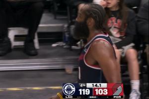 开拓者剩38.2秒失误,快船拿回球权并手握2暂停,依旧没叫一个