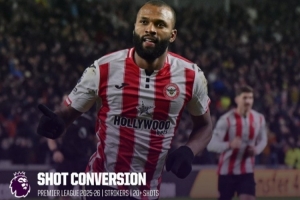 体育资讯1月25日讯 数据网站OPTA盘点了本赛季英超球员射门转化率榜单,具体如下(至少20次射门):