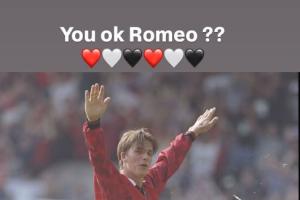 虽然贝克汉姆是曼联名宿,但他的二儿子罗密欧则是阿森纳球迷。赛后,贝克汉姆晒出自己曼联球员时期的庆祝照@罗密欧:“你还好吗??”