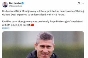 雅各布斯:前澳波助教蒙哥马利将出任国安主帅,48小时内签署协议