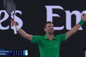 体育资讯01月30日讯 澳网男单半决赛,38岁的德约科维奇鏖战4小时9分钟,以3-2击败辛纳晋级决赛。获胜后,德约张开双臂庆祝。