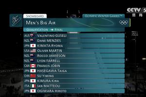 单板滑雪大跳台预赛中,选手需完成三轮比赛且须包含两个不同方向的动作,取这两个不同方向动作的最高分相加以计算预赛总分,总得分排名前12名的选手将晋级决赛。