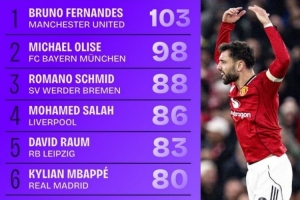 体育资讯12月31日讯 数据网站Squawka盘点了2025年五大联赛创造机会榜,其中B费居首,具体如下: