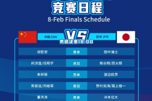 体育资讯2月8日讯 2026亚洲羽毛球团体锦标赛男团决赛中国VS日本的对阵出炉,胡哲安作为一单出战。