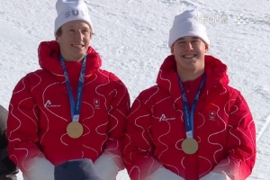 米兰冬奥会高山滑雪男子团体全能回转,瑞士队的冯-阿尔门和内夫获得金牌,冯-阿尔门两天前夺得男子速降的金牌,成为本届冬奥会的首金得主,他也是本届冬奥会首个双金得主。