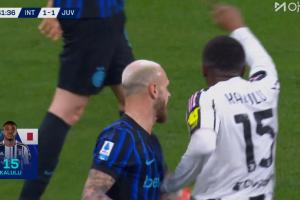 体育资讯02月15日讯 尤文vs国米第42分钟,卡卢卢染黄!两黄变一红被罚下,尤文十人作战!
