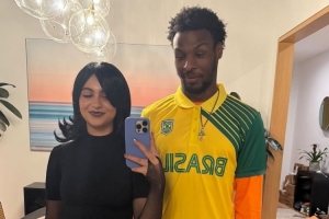 布朗尼晒出他和女友的自拍合影,并写道:“情人节快乐❤️❤️❤️😘😘”