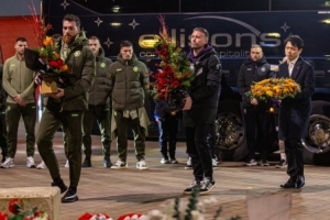狼队球员们比赛前一天晚上来到安菲尔德球场献花,缅怀因车祸去世的前狼队和利物浦球员若塔。