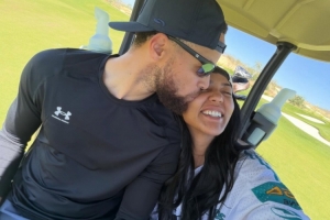 体育资讯2月22日讯 今日勇士球星库里的妻子阿耶莎晒出自己与丈夫合照 。
