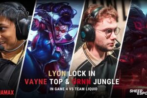 体育资讯2月28日讯 在对战TL的比赛中,LYON上野(Dhokla、Inspired)选出上单薇恩与打野奥恩组合,其中打野奥恩为职业赛场历史第二次登场,第一次为2020年LEC春季赛上出现,由Razork选出。