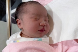 我女儿出生时,眼睛里装满了水,但没有受到任何伤害,就像新年礼物一样。