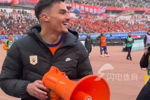 体育资讯3月7日讯 中超首轮,山东泰山主场3-0击败升班马辽宁铁人,取得开门红。据“山东体育休闲频道”报道,赛后王大雷将扬声器递给新援阿尔瓦罗,引导他和球迷互动。