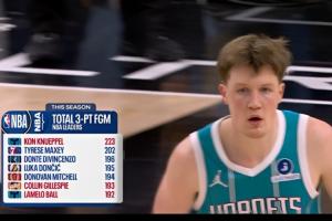 此前,克尼佩尔已经打破了NBA历史新秀单赛季三分命中数纪录(此前基根·穆雷206记三分),还有望成为历史首位拿下联盟赛季三分王的新秀球员。