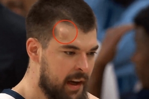 GIF-祖巴茨防守头上被克林根打出包,回更衣室了