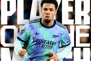阿森纳官方社媒晒出为恩瓦内里制作的海报,宣布他当选本场比赛阿森纳队内最佳球员。