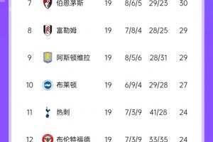本场比赛后,英超积分榜形势如图: