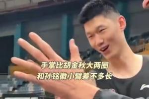 博班已经和广厦队员会面,和胡金秋比了比手,太夸张了……这对比