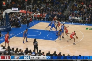 体育资讯1月3日讯 NBA常规赛,快船对阵雷霆的比赛还剩7分钟。