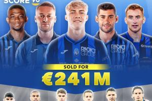 亚特兰大意甲18轮积41分,排名联赛积分榜第一,首发11人引进共花费1.15亿欧元;