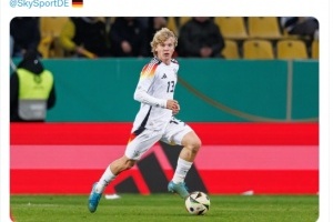 “这位21岁的天才左后卫与拜仁的合同要到2027年,拜仁高层依然相信这名球员。”