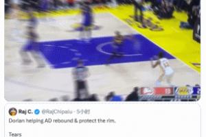 电风扇这回合:协防、争抢篮板、再协防,帮助浓眉收下篮板!湖迷狂赞!