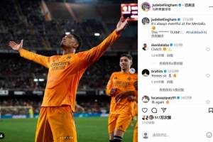 体育资讯1月4日讯 西甲第12轮补赛,皇马客场2-1逆转绝杀瓦伦西亚。赛后,贝林厄姆更新社媒庆祝胜利。