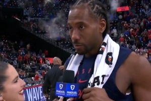 赛后,莱昂纳德在场边接受了记者采访。他说道:“复出的感觉很棒。我们今晚终于能够在画布上画一些色彩了。我们正在努力创造一些美丽的东西,所以让我们继续前进。”