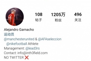 体育资讯1月5日讯 今日,有球迷发现曼联前锋加纳乔的推特账号已无法正常访问。与此同时,在另一个社交平台Instagram上,加纳乔写上了NO TWITTER❌的字样,宣布停用推特。