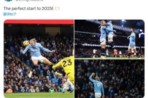 赛后,哈兰德在社交媒体上庆祝了本场比赛球队获胜,他上传了自己头球以及与萨维尼奥拥抱等照片,并配文写道:“2025年的完美开始!”