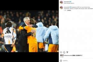 主帅安切洛蒂也在赛后晒出与进球功臣莫德里奇的合影,配文写道:“我们以一场非常重要的胜利开启2025年,我们要再次向每一项荣誉发起冲击,Hala Madrid!”