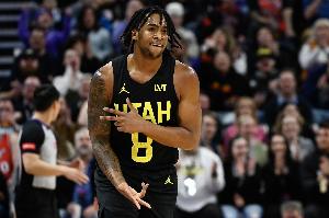 本场比赛,爵士球员森萨博表现出色,继上场比赛拿下34分后本场继续爆发,28分钟的时间里,投篮19中11,三分球6中5,拿到27分3篮板的数据。