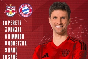 拜仁替补:35-施密特、48-克拉纳克、2-于帕梅卡诺、11-科曼、20-阿尔扬-伊布拉希莫维奇、22-格雷罗、39-特尔、41-库西-阿萨雷、45-帕夫洛维奇、46-阿斯普-延森、98-斯科特、99-德托尼