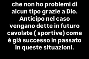 巴洛特利写道:“ 我想说的是,我的身体状况非常好,感谢上帝,我没有任何问题。我在这里是想提前澄清一下,以防之后再听到一些人在胡说八道(体育方面的),就跟之前已经发生过的一样。”