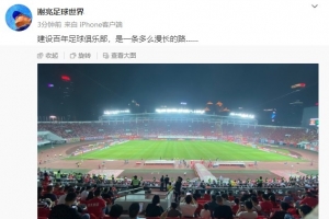 广东电台足球评论员谢亮晒出现场观看广州队比赛的旧照,并且发文:“建设百年足球俱乐部,是一条多么漫长的路…… ”