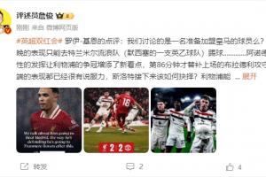 罗伊-基恩的点评:我们讨论的是一名准备加盟皇马的球员么?他今晚的表现只能去特兰米尔流浪队(默西塞的一支英乙球队)踢球.............阿诺德灾难性的发挥让利物浦的争冠增添了新看点,第86分钟才替补上场的布拉德利攻守两端的表现都已经很有说服力,斯洛特接下来该如何抉择?利物浦能拿到一分,还是靠“加克波走廊”的稳定演出,麦卡的后上进攻也有亮点。长远来看,这样的挫折能让全队上下更冷静地分析自身的优缺点,摆正位置。