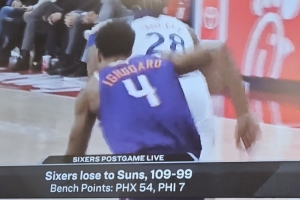 据统计,太阳本场比赛替补球员得分达到了54分,其中比尔一人25分;而76人板凳得分只有7分。