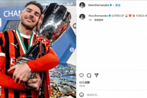 体育资讯1月7日讯 在米兰3-2逆转国米夺得意超杯冠军后,米兰边后卫特奥通过社交媒体晒出了自己怀抱奖杯的照片。