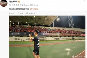 何立攀在社媒晒出了他最后一次向广州队球迷谢场的照片,同时还配文写道:“本以为很快就能再见面。”